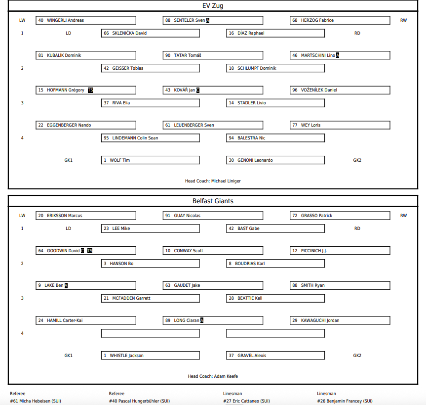 Mannschaftsaufstellung für das Spiel Zug vs. Belfast Giants 07/09/2025 Follow SwissHabs Neueste Artikel Vor 16 Stunden Vertragsverlängerungen beim EHC Chur Vor 18 Stunden Diego Kostner fällt einige Wochen aus Vor 18 Stunden Pontus Åberg verbringt die nächsten Spiele in Kloten Vor 20 Stunden Zwei weitere Verstärkungen für den EHC Visp Vor 20 Stunden Freudiges Ereignis für die Familie Björninen