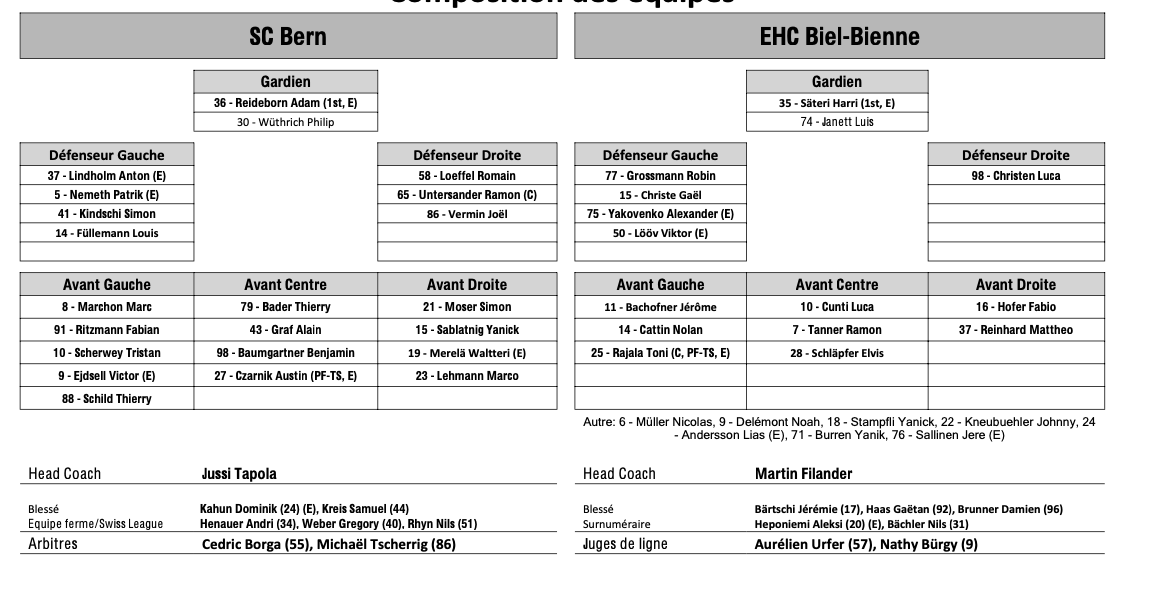 Teamaufstellung und nicht verfügbare Spieler für das Spiel Bern vs. Biel 17/10/2024 Follow SwissHabs Neueste Artikel Vor 15 Stunden Vertragsverlängerungen beim EHC Chur Vor 16 Stunden Diego Kostner fällt einige Wochen aus Vor 16 Stunden Pontus Åberg verbringt die nächsten Spiele in Kloten Vor 18 Stunden Zwei weitere Verstärkungen für den EHC Visp Vor 18 Stunden Freudiges Ereignis für die Familie Björninen