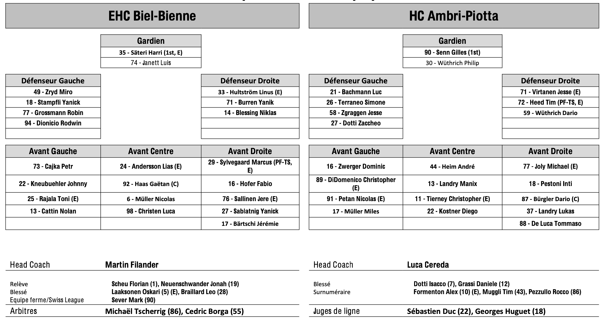 Teamaufstellung und nicht verfügbare Spieler für das Spiel Biel vs. Ambri 20/09/2025 Follow SwissHabs Neueste Artikel Vor 13 Stunden Vertragsverlängerungen beim EHC Chur Vor 15 Stunden Diego Kostner fällt einige Wochen aus Vor 15 Stunden Pontus Åberg verbringt die nächsten Spiele in Kloten Vor 17 Stunden Zwei weitere Verstärkungen für den EHC Visp Vor 17 Stunden Freudiges Ereignis für die Familie Björninen