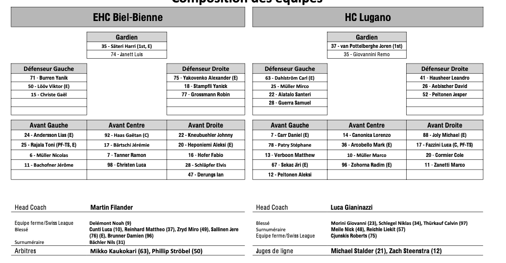 Teamaufstellung und nicht verfügbare Spieler für das Spiel Biel vs. Lugano 04/10/2024 Follow SwissHabs Neueste Artikel Vor 58 Minuten Schock für die Stars: Mikko Rantanen verletzt Vor einer Stunde Tarmo Reunanen aus seinem Team ausgeschlossen Vor 2 Stunden Enzo Corvi nähert sich seiner Rückkehr Vor 2 Stunden Dünner fällt aus - Larsson übernimmt als Captain Vor 3 Stunden Basel : Vertragsverlängerung Barbei & Supinski