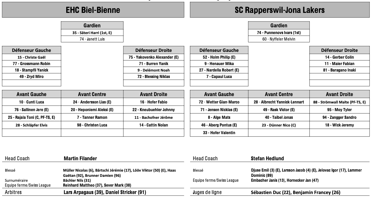 Teamaufstellung und nicht verfügbare Spieler für das Spiel Biel vs. Rapperswil 25/10/2024 Follow SwissHabs Neueste Artikel Vor 58 Minuten Schock für die Stars: Mikko Rantanen verletzt Vor einer Stunde Tarmo Reunanen aus seinem Team ausgeschlossen Vor 2 Stunden Enzo Corvi nähert sich seiner Rückkehr Vor 2 Stunden Dünner fällt aus - Larsson übernimmt als Captain Vor 3 Stunden Basel : Vertragsverlängerung Barbei & Supinski