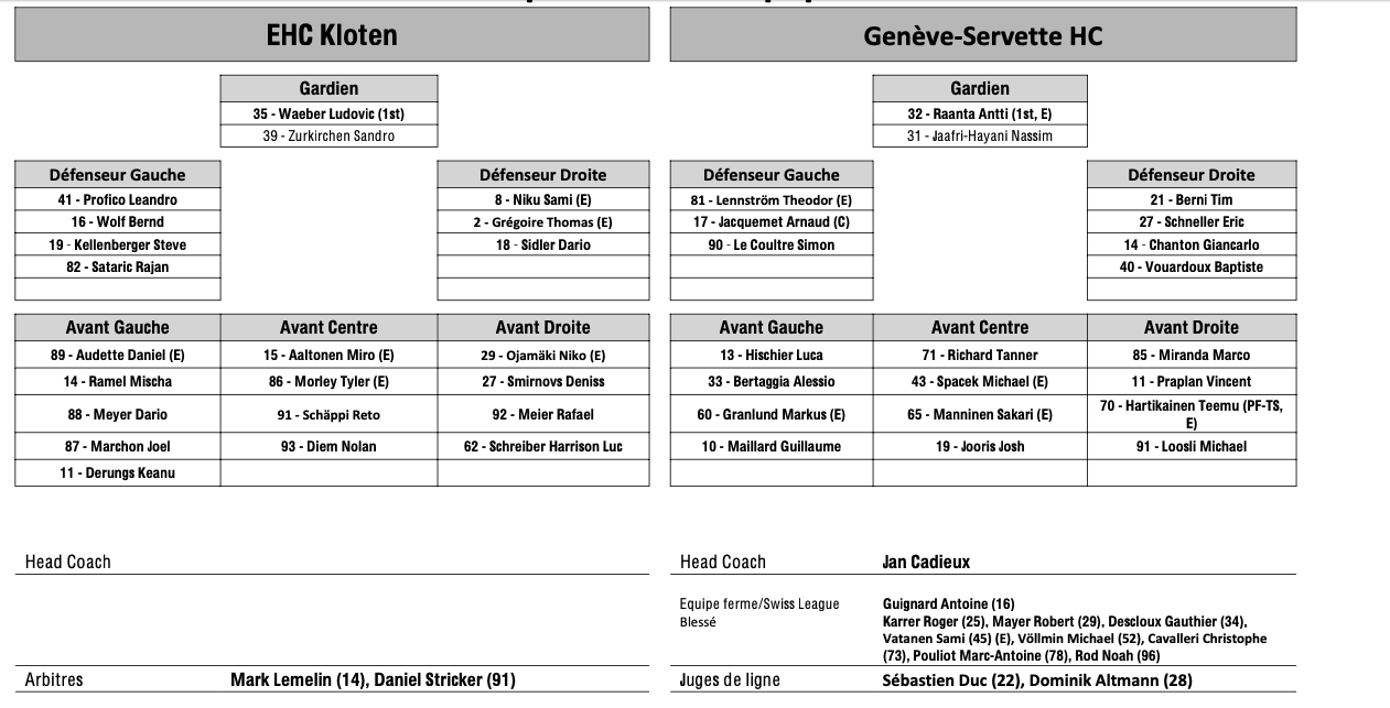 Teamaufstellung und nicht verfügbare Spieler für das Spiel Kloten vs. Genf 05/10/2024 Follow SwissHabs Neueste Artikel Vor 58 Minuten Schock für die Stars: Mikko Rantanen verletzt Vor einer Stunde Tarmo Reunanen aus seinem Team ausgeschlossen Vor 2 Stunden Enzo Corvi nähert sich seiner Rückkehr Vor 2 Stunden Dünner fällt aus - Larsson übernimmt als Captain Vor 3 Stunden Basel : Vertragsverlängerung Barbei & Supinski