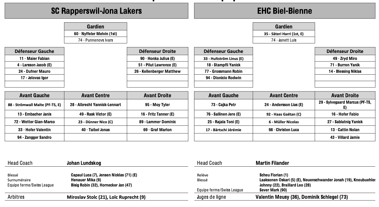 Teamaufstellung und nicht verfügbare Spieler für das Spiel Rapperswil vs Biel 23/09/2025 Follow SwissHabs Neueste Artikel Vor 17 Stunden Vertragsverlängerungen beim EHC Chur Vor 18 Stunden Diego Kostner fällt einige Wochen aus Vor 18 Stunden Pontus Åberg verbringt die nächsten Spiele in Kloten Vor 20 Stunden Zwei weitere Verstärkungen für den EHC Visp Vor 20 Stunden Freudiges Ereignis für die Familie Björninen