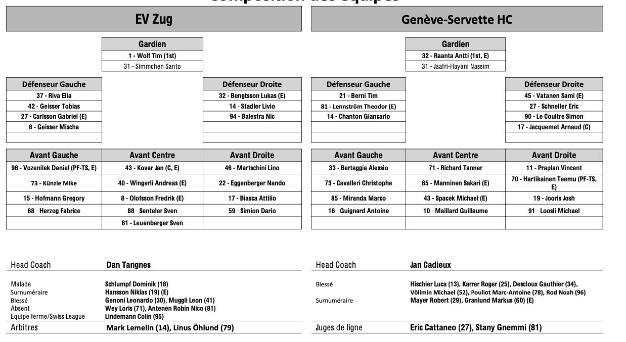Teamaufstellung und nicht verfügbare Spieler für das Spiel Zug vs. Genf 25/10/2024 Follow SwissHabs Neueste Artikel Vor 58 Minuten Schock für die Stars: Mikko Rantanen verletzt Vor einer Stunde Tarmo Reunanen aus seinem Team ausgeschlossen Vor 2 Stunden Enzo Corvi nähert sich seiner Rückkehr Vor 2 Stunden Dünner fällt aus - Larsson übernimmt als Captain Vor 3 Stunden Basel : Vertragsverlängerung Barbei & Supinski