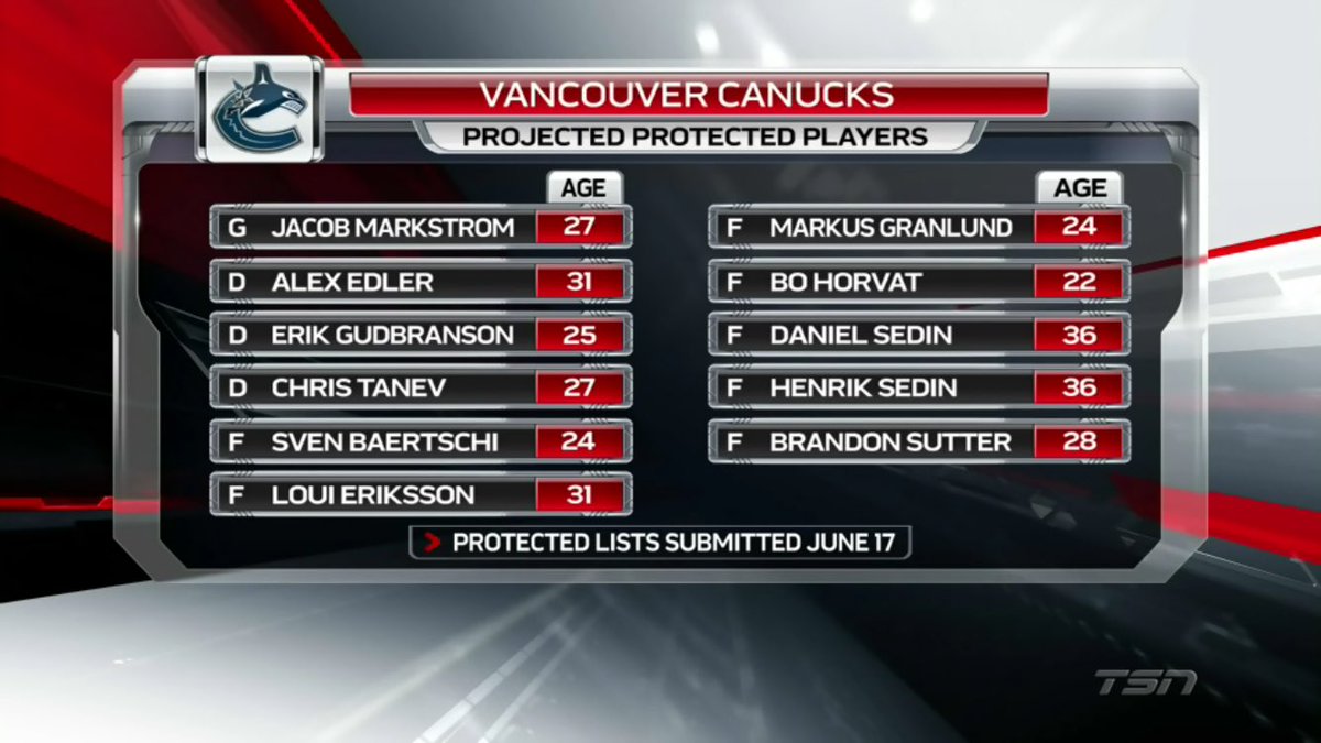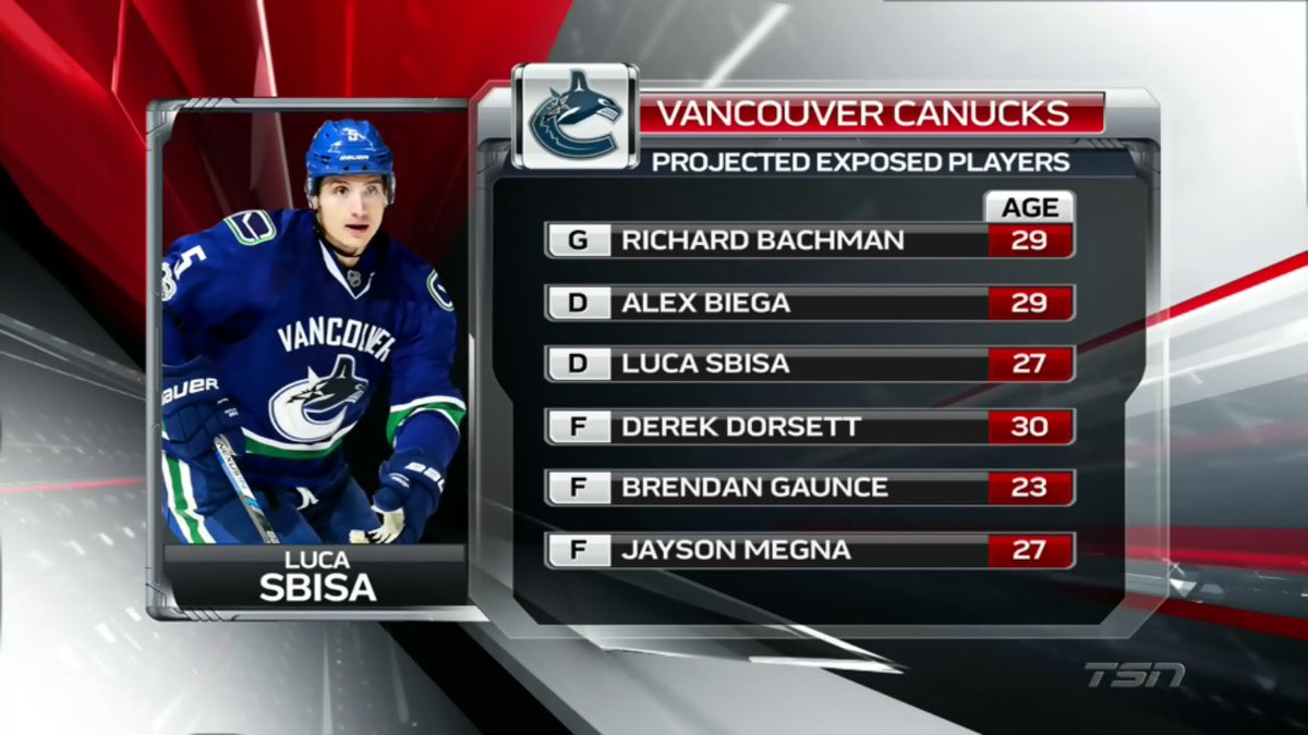 TSN a effectué ce qui pourrait ressembler à la liste remise par les Canucks, avec Luca Sbisa qui ne serait pas protégé et représenterait le choix le plus probable pour changer d'adresse. Le processus est ici