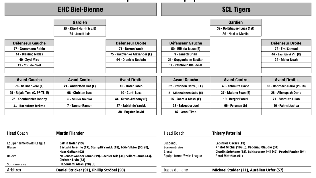 Formation des équipes et joueurs indisponibles pour le match Bienne vs Langnau 27/02/2025 Follow SwissHabs Derniers articles Il y a 12 minutes Berne aurait porté son choix sur Ville Peltonen Il y a 30 minutes 700 assists en NHL pour Nikita Kucherov Il y a une heure Tyler Myers sans doute sur le départ Il y a une heure Un 15e but pour Timo Meier mais une défaite pour les Devils Il y a 9 heures Retour de l'action en NHL : quelques chiffres à retenir
