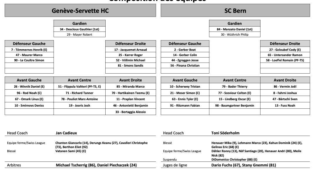 Formation des équipes et joueurs indisponibles pour le match Genève vs Berne 25/11/2022 Follow SwissHabs Derniers articles Il y a 12 minutes Berne aurait porté son choix sur Ville Peltonen Il y a 30 minutes 700 assists en NHL pour Nikita Kucherov Il y a une heure Tyler Myers sans doute sur le départ Il y a une heure Un 15e but pour Timo Meier mais une défaite pour les Devils Il y a 9 heures Retour de l'action en NHL : quelques chiffres à retenir