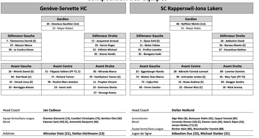 Formation des équipes et joueurs indisponibles pour le match Genève vs Rapperswil 29/11/2022 Follow SwissHabs Derniers articles Il y a 58 minutes Lian Bichsel de retour, Nino Niederreiter blessé Il y a une heure Pénurie d’entraîneurs suisses d’élite en hockey sur glace Il y a 3 heures Un mois d'absence pour Sidney Crosby Il y a 4 heures Changements au sein du département athlétique des SCL Tigers et SCL Young Tigers Il y a 7 heures Djurgården a toujours Emil Bemström dans son viseur