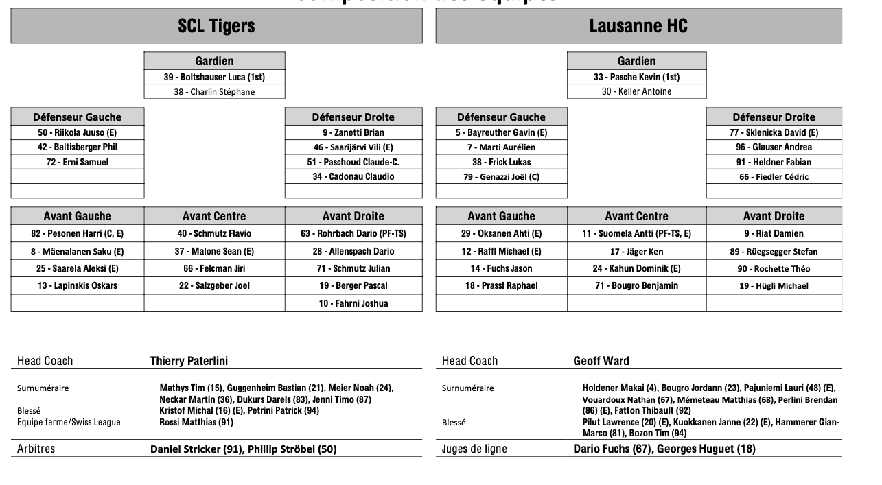 Formation des équipes et joueurs indisponibles pour le match Langnau vs Lausanne 19/03/2025 Follow SwissHabs Derniers articles Il y a 17 heures Régis Fuchs sera honoré cette semaine Il y a 18 heures Prolongations de contrats à l'EHC Coire Il y a 20 heures Diego Kostner absent quelques semaines Il y a 20 heures Pontus Åberg passera les prochains matchs à Kloten Il y a 22 heures Deux autres renforts pour le HC Viège