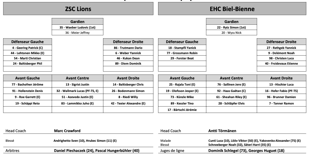 Formation des équipes et joueurs indisponibles pour le match Zurich vs Bienne 01/01/2023 Follow SwissHabs Derniers articles Il y a 7 minutes Reto Berra et Damiano Ciaccio ne terminent pas le match Il y a 28 minutes La folle et coûteuse nuit dorée de Team USA Il y a 45 minutes Seattle prolonge deux attaquants de soutien Il y a 54 minutes Retour complet sur la soirée de National League Il y a 9 heures Les Scorer King de Swiss League vont être tous mignons