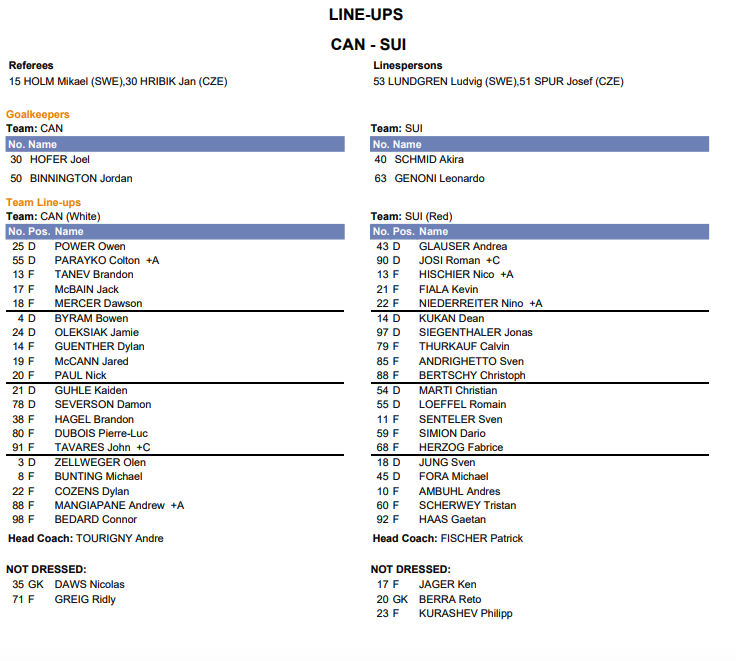 Formation des équipes pour le match Canada Suisse 25/05/2024 Follow SwissHabs Derniers articles Il y a 12 heures Régis Fuchs sera honoré cette semaine Il y a 13 heures Prolongations de contrats à l'EHC Coire Il y a 15 heures Diego Kostner absent quelques semaines Il y a 15 heures Pontus Åberg passera les prochains matchs à Kloten Il y a 17 heures Deux autres renforts pour le HC Viège