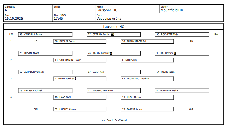 Formation des équipes pour le match Lausanne vs Mountfield 15/10/2025 Follow SwissHabs Derniers articles Il y a une heure Des nouvelles de l'infirmerie du HC Bienne Il y a 2 heures Nolan Diem portera les couleurs d'Ajoie Il y a 3 heures Le point sur l'effectif du CP Berne Il y a 4 heures JO : quel impact sur le développement du hockey aux Etats-Unis ? Il y a 4 heures Raphael Diaz va faire son retour au jeu face à Fribourg