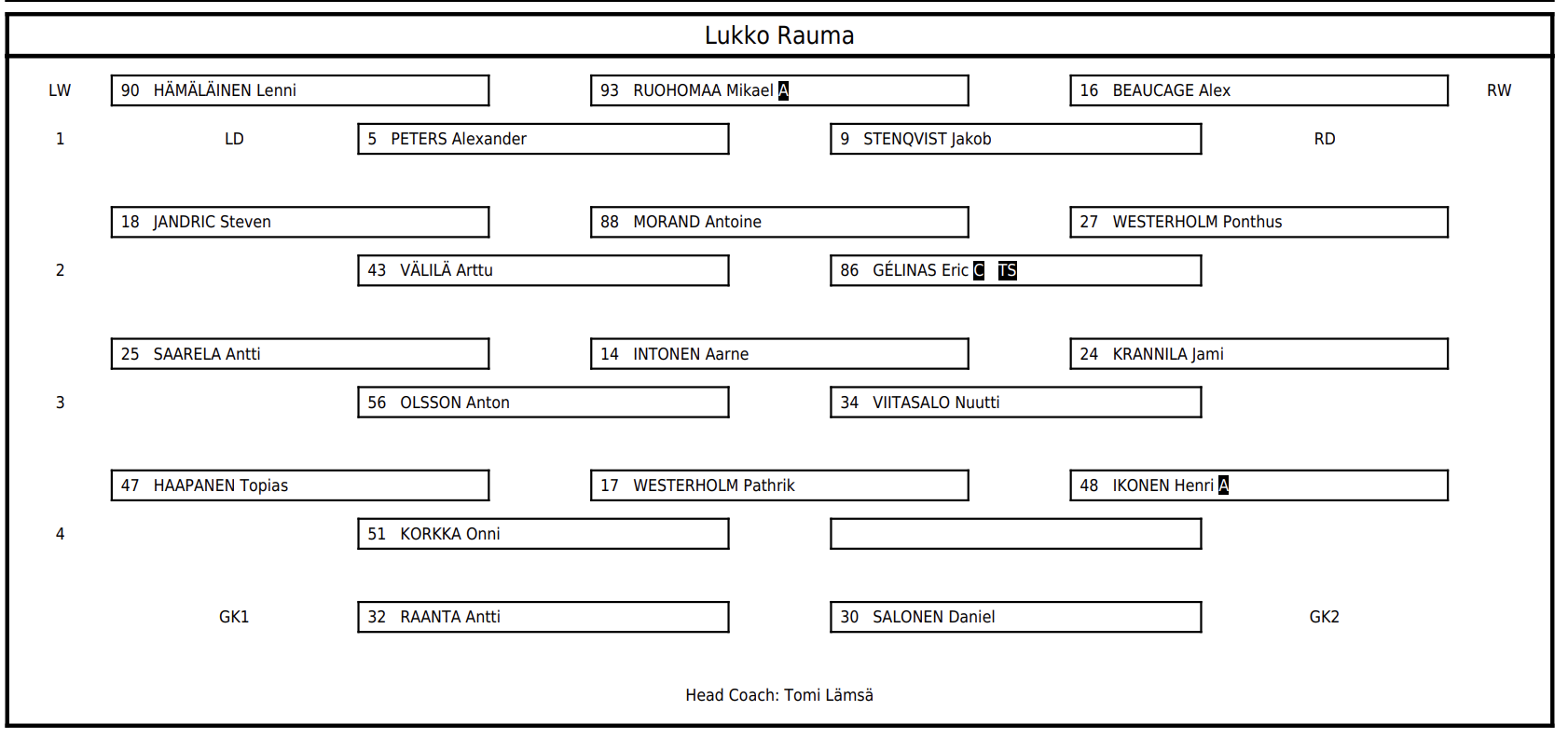 Formation des équipes pour le match Lukko Rauma vs Zoug 07/10/2025 Follow SwissHabs Derniers articles Il y a 28 minutes Le point sur l'effectif du CP Berne Il y a 50 minutes JO : quel impact sur le développement du hockey aux Etats-Unis ? Il y a une heure Raphael Diaz va faire son retour au jeu face à Fribourg Il y a 2 heures Des nouvelles très mitigées concernant Marcus Sörensen Il y a 2 heures Un autre gardien à disposition du HC Ajoie