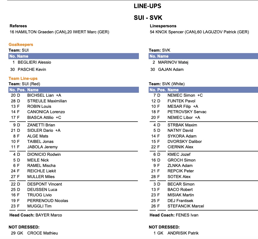 Formation des équipes pour le match Suisse vs Slovaquie 31/12/2022 Follow SwissHabs Derniers articles Il y a 7 heures Les Scorer King de Swiss League vont être tous mignons Il y a 8 heures La cuvée de 2026 du Temple de la renommée de la LHJMQ Il y a 9 heures Echange entre les Penguins de Pittsburgh et l'Avalanche du Colorado Il y a 10 heures Formation des équipes et joueurs indisponibles pour le match Davos vs Langnau Il y a 10 heures Formation des équipes et joueurs indisponibles pour le match Rapperswil vs Genève