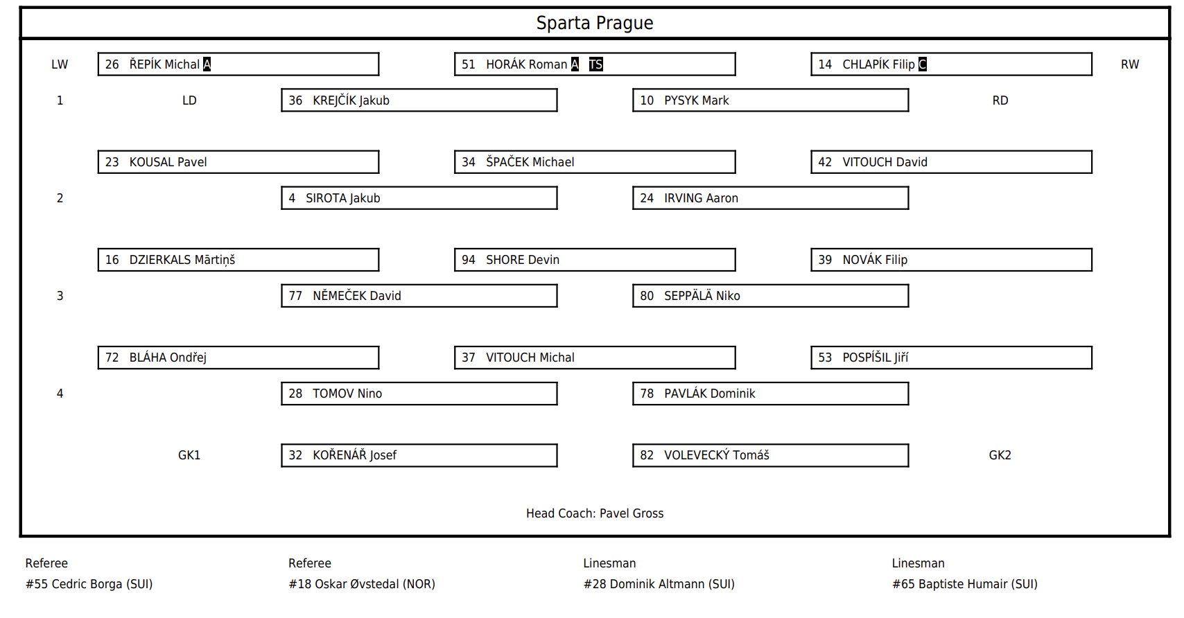 Formation des équipes pour le match Zurich vs Prague 07/10/2025 Follow SwissHabs Derniers articles Il y a 28 minutes Le point sur l'effectif du CP Berne Il y a 50 minutes JO : quel impact sur le développement du hockey aux Etats-Unis ? Il y a une heure Raphael Diaz va faire son retour au jeu face à Fribourg Il y a 2 heures Des nouvelles très mitigées concernant Marcus Sörensen Il y a 2 heures Un autre gardien à disposition du HC Ajoie