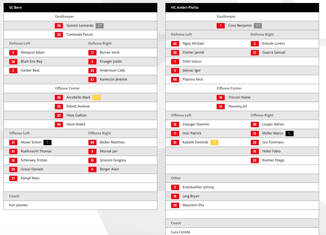 Formation des équipes pour les matchs du jour en National League 16/11/2018 Follow SwissHabs Derniers articles Il y a 2 heures Retour de l'action en NHL : quelques chiffres à retenir Il y a 4 heures Lian Bichsel de retour, Nino Niederreiter blessé Il y a 5 heures Pénurie d’entraîneurs suisses d’élite en hockey sur glace Il y a 7 heures Un mois d'absence pour Sidney Crosby Il y a 8 heures Changements au sein du département athlétique des SCL Tigers et SCL Young Tigers