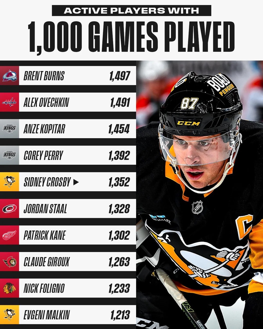 Joueurs actifs en NHL avec plus de 1'000 matchs au compteur 03/09/2025 Follow SwissHabs Derniers articles Il y a 6 heures Les Scorer King de Swiss League vont être tous mignons Il y a 6 heures La cuvée de 2026 du Temple de la renommée de la LHJMQ Il y a 8 heures Echange entre les Penguins de Pittsburgh et l'Avalanche du Colorado Il y a 8 heures Formation des équipes et joueurs indisponibles pour le match Davos vs Langnau Il y a 9 heures Formation des équipes et joueurs indisponibles pour le match Rapperswil vs Genève