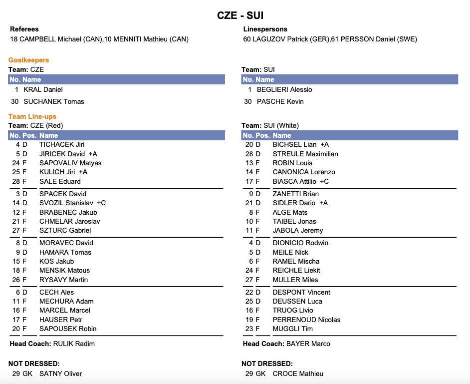 Mondiaux U20 : formation des équipes pour le match Suisse vs Tchéquie 02/01/2023 Follow SwissHabs Derniers articles Il y a une heure Laure Mériguet revient sur son expérience olympique Il y a une heure Reto Berra et Damiano Ciaccio ne terminent pas le match Il y a 2 heures La folle et coûteuse nuit dorée de Team USA Il y a 2 heures Seattle prolonge deux attaquants de soutien Il y a 2 heures Retour complet sur la soirée de National League