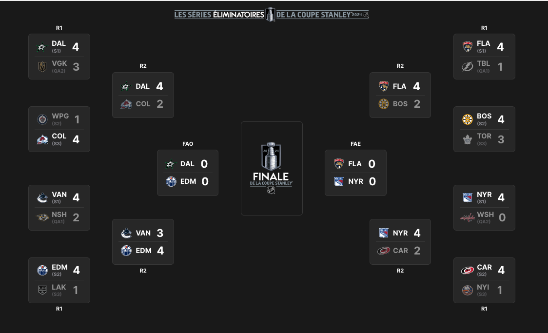 Votre tableau de ces play-offs de NHL 21/05/2024 Follow SwissHabs Derniers articles Il y a une heure Nolan Diem portera les couleurs d'Ajoie Il y a 2 heures Le point sur l'effectif du CP Berne Il y a 2 heures JO : quel impact sur le développement du hockey aux Etats-Unis ? Il y a 3 heures Raphael Diaz va faire son retour au jeu face à Fribourg Il y a 3 heures Des nouvelles très mitigées concernant Marcus Sörensen