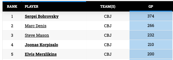 Elvis Merzlikins absolvierte seinen 200. NHL-Karriereeinsatz und wurde damit der fünfte Torhüter in der Geschichte der Blue Jackets, der diesen Meilenstein erreichte.