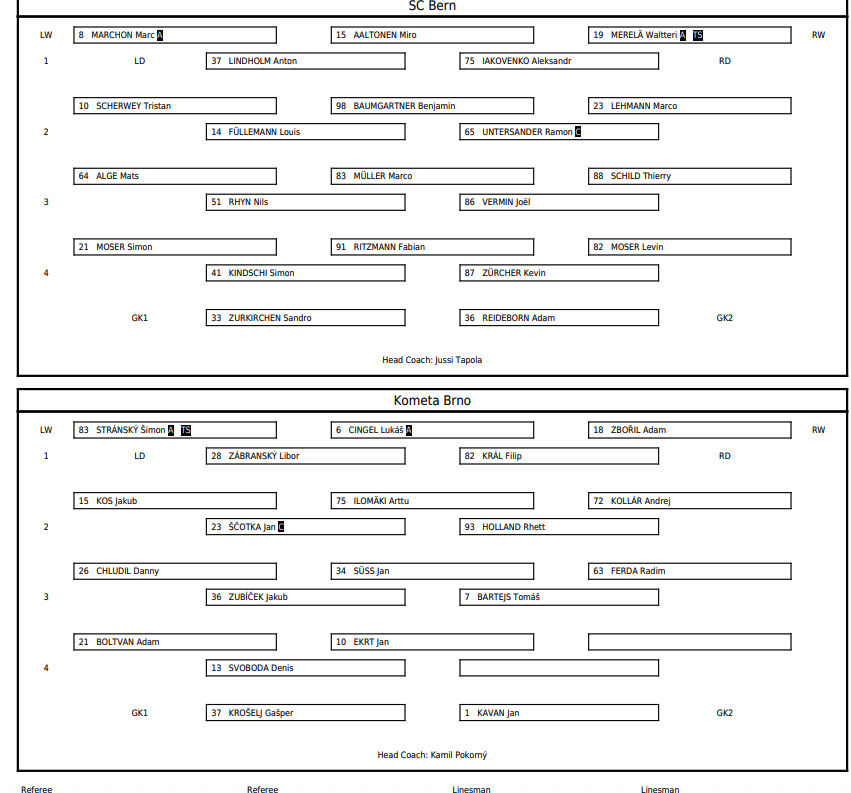Aufstellung der Teams für das Spiel Bern vs. Kometa Brno 07/09/2025 Follow SwissHabs Neueste Artikel Vor 45 Minuten SC Bern: Aktuelle Informationen zum Kader Vor einer Stunde Raphael Diaz feiert Comeback gegen Freiburg Vor 2 Stunden Gemischte Nachrichten zu Marcus Sörensen Vor 2 Stunden Neuer Torhüter für den HC Ajoie verfügbar Vor 2 Stunden SwissHabs: Frische Updates für die Hockey-Seite