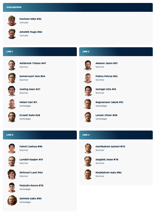 Aufstellung der Teams für das Spiel Fribourg-Gottéron vs IFK Helsinki 28/12/2025 Follow SwissHabs Neueste Artikel Vor 18 Stunden Vertragsverlängerungen beim EHC Chur Vor 20 Stunden Diego Kostner fällt einige Wochen aus Vor 20 Stunden Pontus Åberg verbringt die nächsten Spiele in Kloten Vor 22 Stunden Zwei weitere Verstärkungen für den EHC Visp Vor 22 Stunden Freudiges Ereignis für die Familie Björninen