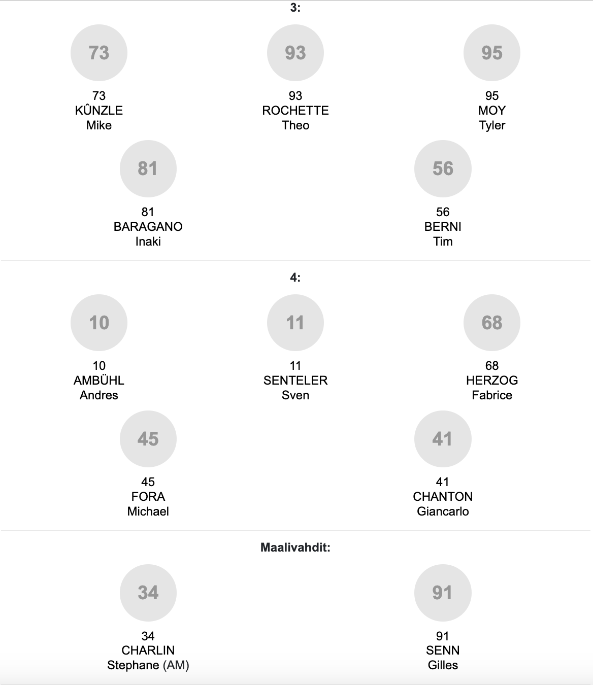 Aufstellung der Teams für das Spiel Schweiz vs. Finnland