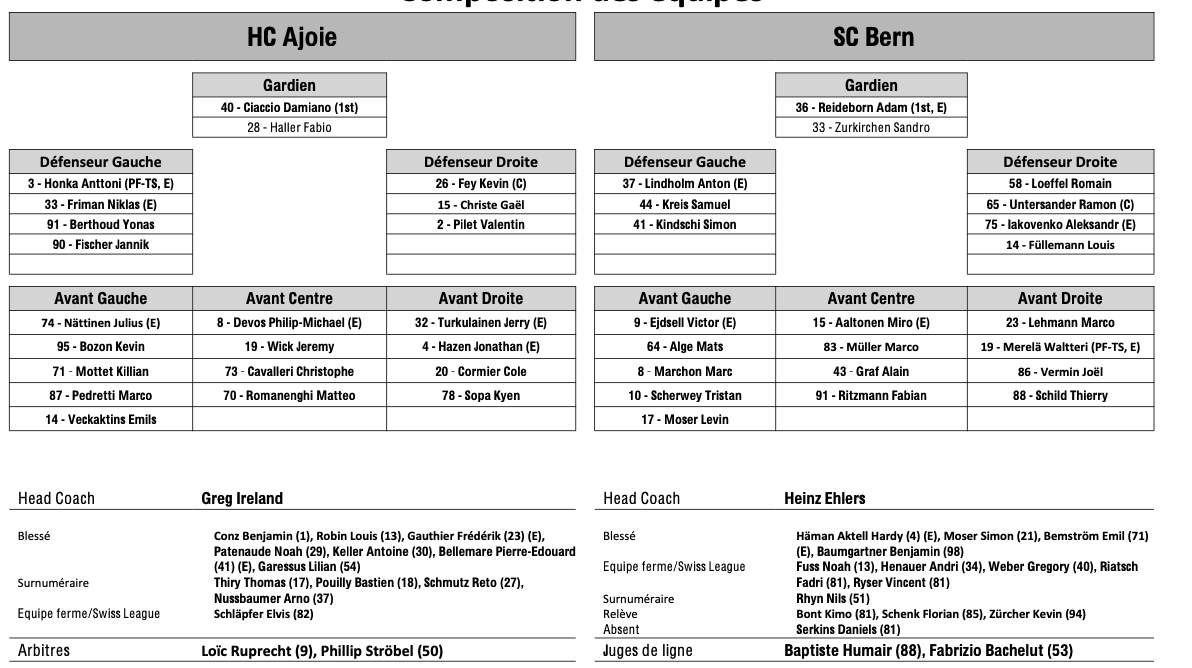 Teamaufstellung und nicht verfügbare Spieler für das Spiel Ajoie vs Bern 02/01/2026 Follow SwissHabs Neueste Artikel Vor 16 Stunden Vertragsverlängerungen beim EHC Chur Vor 18 Stunden Diego Kostner fällt einige Wochen aus Vor 18 Stunden Pontus Åberg verbringt die nächsten Spiele in Kloten Vor 20 Stunden Zwei weitere Verstärkungen für den EHC Visp Vor 20 Stunden Freudiges Ereignis für die Familie Björninen