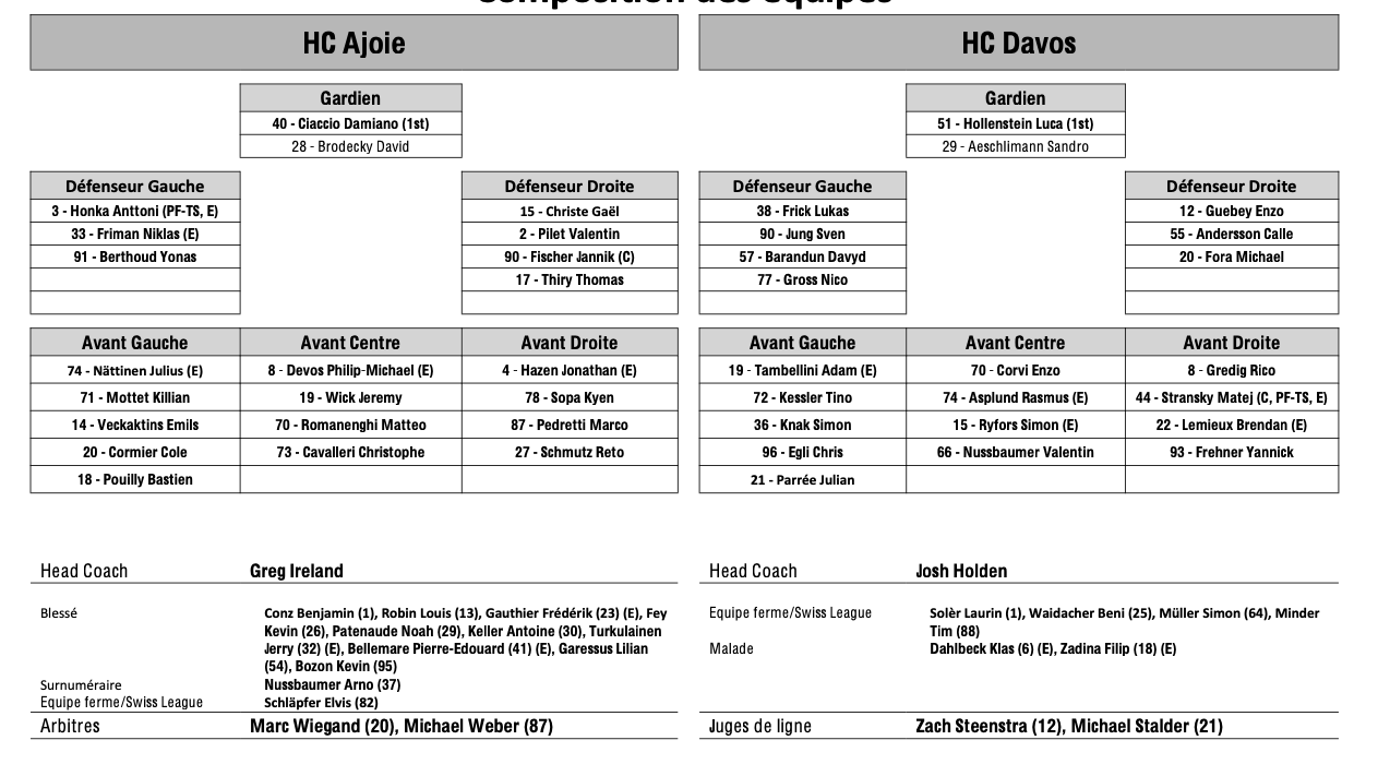 Teamaufstellung und nicht verfügbare Spieler für das Spiel Ajoie vs Davos 17/01/2026 Follow SwissHabs Neueste Artikel Vor 18 Stunden Vertragsverlängerungen beim EHC Chur Vor 20 Stunden Diego Kostner fällt einige Wochen aus Vor 20 Stunden Pontus Åberg verbringt die nächsten Spiele in Kloten Vor 22 Stunden Zwei weitere Verstärkungen für den EHC Visp Vor 22 Stunden Freudiges Ereignis für die Familie Björninen