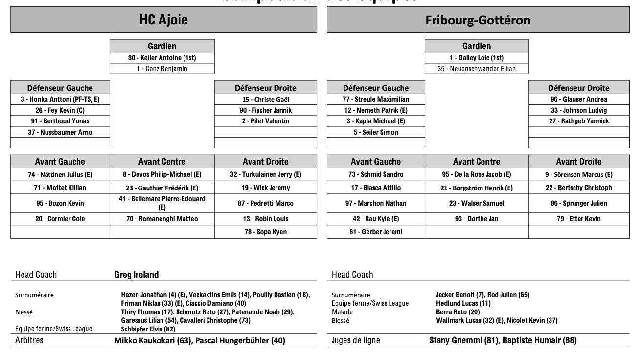 Teamaufstellung und nicht verfügbare Spieler für das Spiel Ajoie vs Fribourg 05/12/2025 Follow SwissHabs Neueste Artikel Vor 16 Stunden Vertragsverlängerungen beim EHC Chur Vor 18 Stunden Diego Kostner fällt einige Wochen aus Vor 18 Stunden Pontus Åberg verbringt die nächsten Spiele in Kloten Vor 20 Stunden Zwei weitere Verstärkungen für den EHC Visp Vor 20 Stunden Freudiges Ereignis für die Familie Björninen