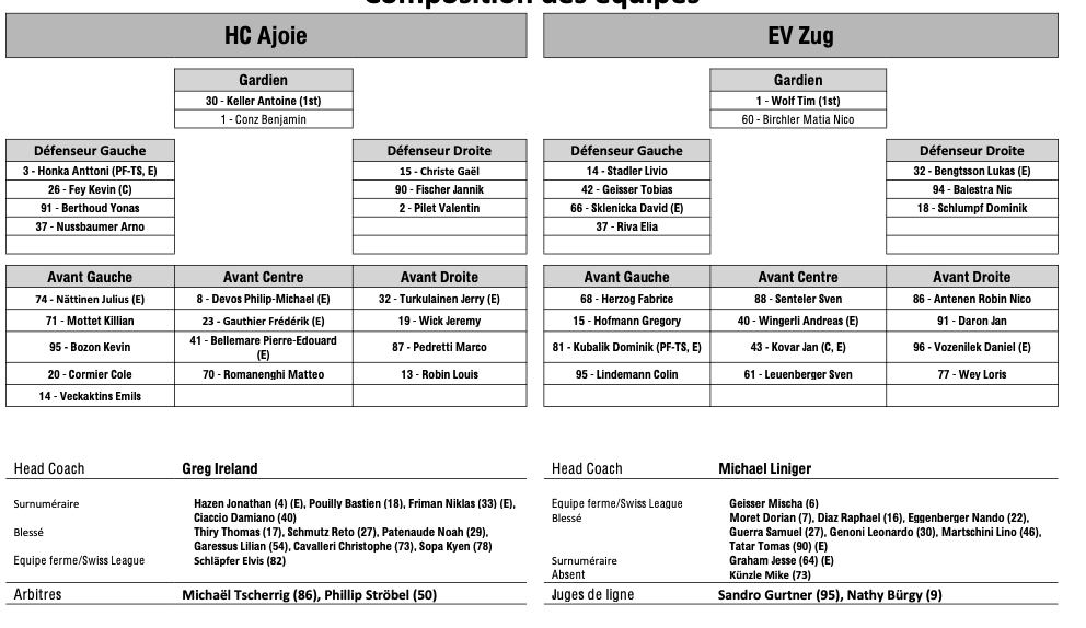 Teamaufstellung und nicht verfügbare Spieler für das Spiel Ajoie vs Zug 29/11/2025 Follow SwissHabs Neueste Artikel Vor 18 Stunden Vertragsverlängerungen beim EHC Chur Vor 20 Stunden Diego Kostner fällt einige Wochen aus Vor 20 Stunden Pontus Åberg verbringt die nächsten Spiele in Kloten Vor 22 Stunden Zwei weitere Verstärkungen für den EHC Visp Vor 22 Stunden Freudiges Ereignis für die Familie Björninen