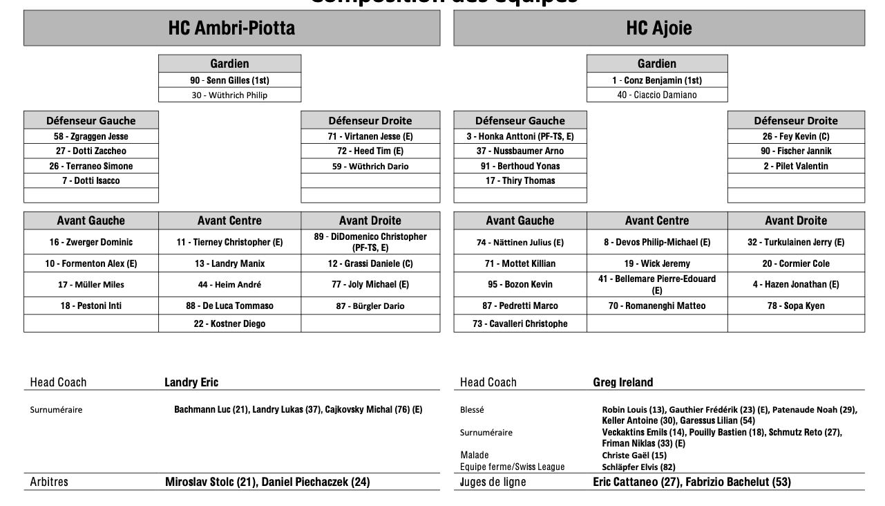 Teamaufstellung und nicht verfügbare Spieler für das Spiel Ambri vs Ajoie 23/12/2025 Follow SwissHabs Neueste Artikel Vor 16 Stunden Vertragsverlängerungen beim EHC Chur Vor 18 Stunden Diego Kostner fällt einige Wochen aus Vor 18 Stunden Pontus Åberg verbringt die nächsten Spiele in Kloten Vor 20 Stunden Zwei weitere Verstärkungen für den EHC Visp Vor 20 Stunden Freudiges Ereignis für die Familie Björninen