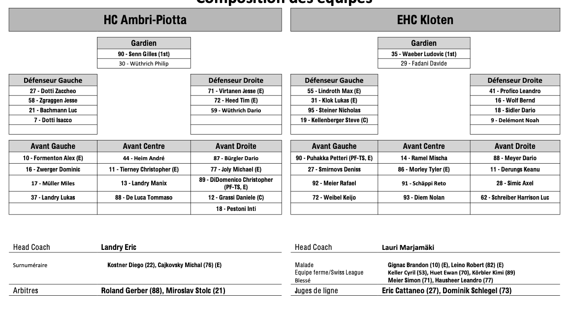 Teamaufstellung und nicht verfügbare Spieler für das Spiel Ambri vs. Kloten 17/01/2026 Follow SwissHabs Neueste Artikel Vor 18 Stunden Vertragsverlängerungen beim EHC Chur Vor 20 Stunden Diego Kostner fällt einige Wochen aus Vor 20 Stunden Pontus Åberg verbringt die nächsten Spiele in Kloten Vor 22 Stunden Zwei weitere Verstärkungen für den EHC Visp Vor 22 Stunden Freudiges Ereignis für die Familie Björninen
