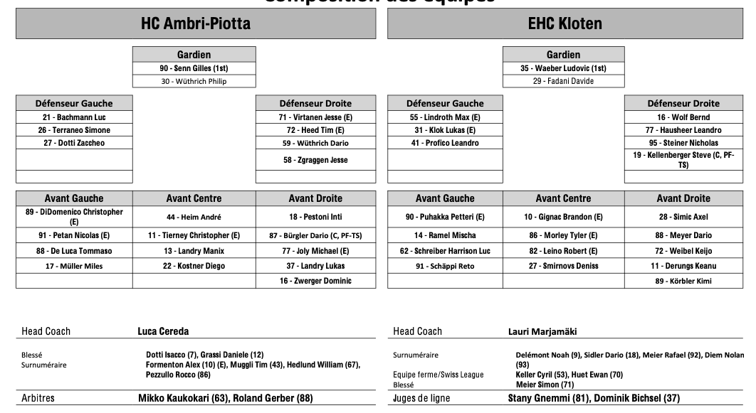 Teamaufstellung und nicht verfügbare Spieler für das Spiel Ambri vs. Kloten 09/09/2025 Follow SwissHabs Neueste Artikel Vor 18 Stunden Vertragsverlängerungen beim EHC Chur Vor 20 Stunden Diego Kostner fällt einige Wochen aus Vor 20 Stunden Pontus Åberg verbringt die nächsten Spiele in Kloten Vor 22 Stunden Zwei weitere Verstärkungen für den EHC Visp Vor 22 Stunden Freudiges Ereignis für die Familie Björninen