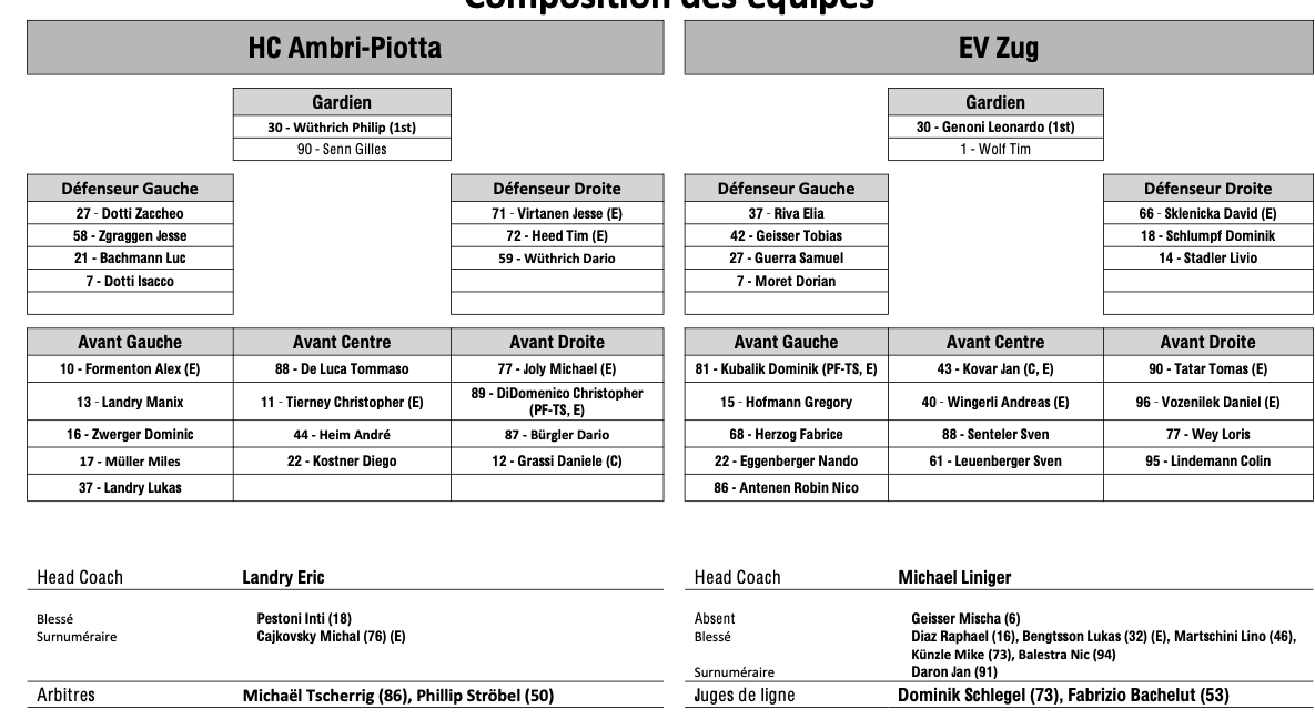 Teamaufstellung und nicht verfügbare Spieler für das Spiel Ambri vs. Zug 06/01/2026 Follow SwissHabs Neueste Artikel Vor 18 Stunden Vertragsverlängerungen beim EHC Chur Vor 20 Stunden Diego Kostner fällt einige Wochen aus Vor 20 Stunden Pontus Åberg verbringt die nächsten Spiele in Kloten Vor 22 Stunden Zwei weitere Verstärkungen für den EHC Visp Vor 22 Stunden Freudiges Ereignis für die Familie Björninen