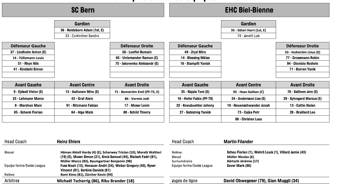 Teamaufstellung und nicht verfügbare Spieler für das Spiel Bern vs. Biel 03/12/2025 Follow SwissHabs Neueste Artikel Vor 16 Stunden Vertragsverlängerungen beim EHC Chur Vor 18 Stunden Diego Kostner fällt einige Wochen aus Vor 18 Stunden Pontus Åberg verbringt die nächsten Spiele in Kloten Vor 20 Stunden Zwei weitere Verstärkungen für den EHC Visp Vor 20 Stunden Freudiges Ereignis für die Familie Björninen