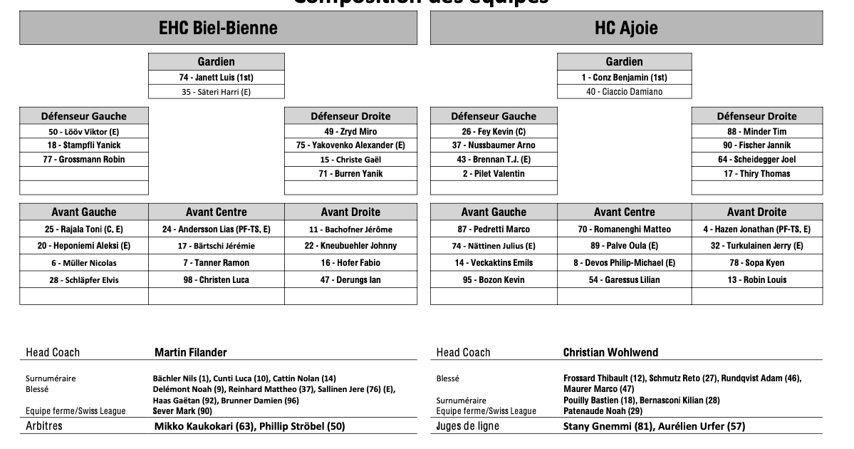 Teamaufstellung und nicht verfügbare Spieler für das Spiel Biel vs Ajoie 21/09/2024 Follow SwissHabs Neueste Artikel Vor 14 Minuten Djurgården hat Emil Bemström weiterhin im Visier Vor 33 Minuten Gregory Hofmann nominiert für das schönste Tor der Champions Hockey League Saison Vor 2 Stunden Neuzugang beim HC Ajoie: Matthew Kellenberger unterschreibt Vor 2 Stunden Ein Spiel Sperre und eine Geldstrafe gegen Jens Nater Vor 4 Stunden Markus Korhonen wechselt nach Kloten, Simo Vehviläinen übernimmt seinen Posten