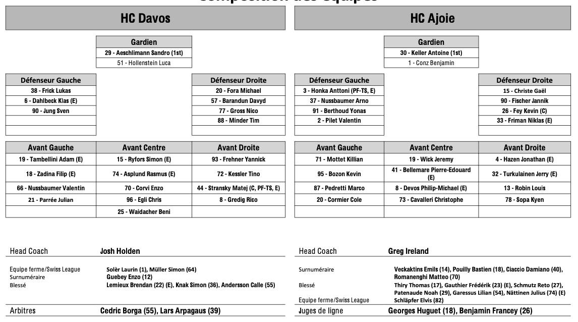 Teamaufstellung und nicht verfügbare Spieler für das Spiel Davos vs Ajoie 25/11/2025 Follow SwissHabs Neueste Artikel Vor 19 Stunden Vertragsverlängerungen beim EHC Chur Vor 21 Stunden Diego Kostner fällt einige Wochen aus Vor 21 Stunden Pontus Åberg verbringt die nächsten Spiele in Kloten Vor 23 Stunden Zwei weitere Verstärkungen für den EHC Visp Vor 23 Stunden Freudiges Ereignis für die Familie Björninen