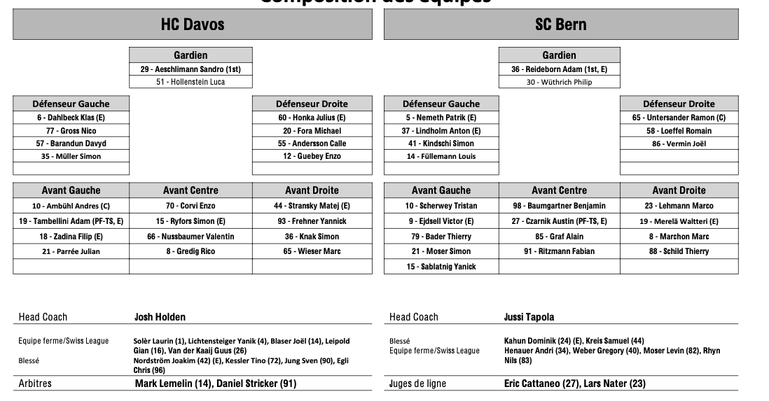Teamaufstellung und nicht verfügbare Spieler für das Spiel Davos vs. Bern 10/10/2024 Follow SwissHabs Neueste Artikel Vor 8 Minuten Raphael Diaz feiert Comeback gegen Freiburg Vor 34 Minuten Gemischte Nachrichten zu Marcus Sörensen Vor 47 Minuten Neuer Torhüter für den HC Ajoie verfügbar Vor einer Stunde SwissHabs: Frische Updates für die Hockey-Seite Vor 21 Stunden Vertragsverlängerungen beim EHC Chur
