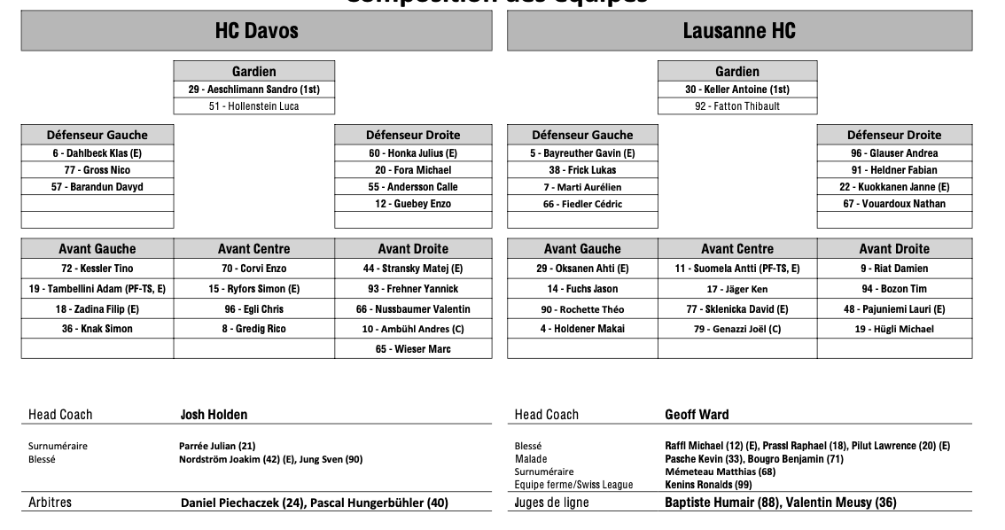 Teamaufstellung und nicht verfügbare Spieler für das Spiel Davos vs. Lausanne 18/10/2024 Follow SwissHabs Neueste Artikel Vor 19 Stunden Vertragsverlängerungen beim EHC Chur Vor 21 Stunden Diego Kostner fällt einige Wochen aus Vor 21 Stunden Pontus Åberg verbringt die nächsten Spiele in Kloten Vor 23 Stunden Zwei weitere Verstärkungen für den EHC Visp Vor 23 Stunden Freudiges Ereignis für die Familie Björninen