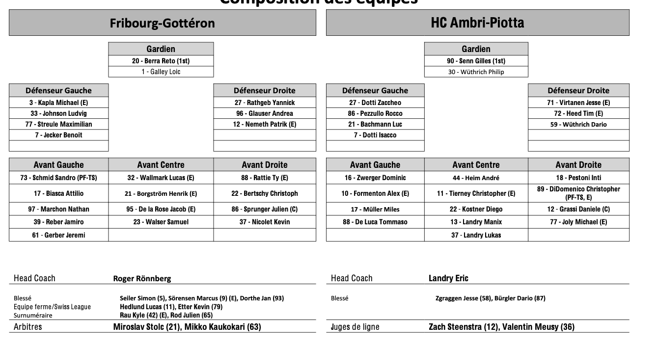 Teamaufstellung und nicht verfügbare Spieler für das Spiel Fribourg vs. Ambri 27/01/2026 Follow SwissHabs Neueste Artikel Vor 16 Stunden Vertragsverlängerungen beim EHC Chur Vor 18 Stunden Diego Kostner fällt einige Wochen aus Vor 18 Stunden Pontus Åberg verbringt die nächsten Spiele in Kloten Vor 20 Stunden Zwei weitere Verstärkungen für den EHC Visp Vor 20 Stunden Freudiges Ereignis für die Familie Björninen