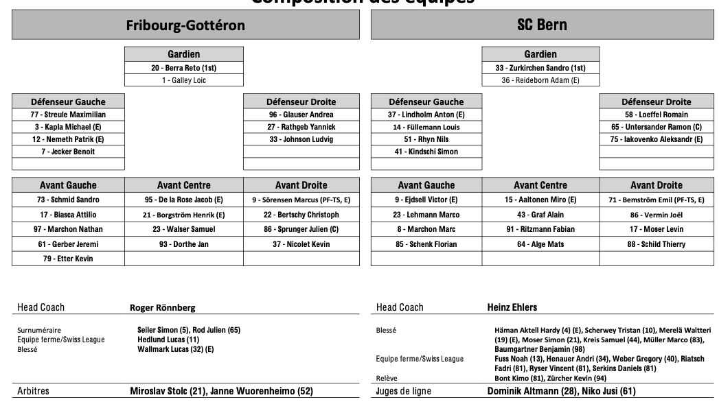 Teamaufstellung und nicht verfügbare Spieler für das Spiel Fribourg vs. Bern 29/11/2025 Follow SwissHabs Neueste Artikel Vor 18 Stunden Vertragsverlängerungen beim EHC Chur Vor 20 Stunden Diego Kostner fällt einige Wochen aus Vor 20 Stunden Pontus Åberg verbringt die nächsten Spiele in Kloten Vor 22 Stunden Zwei weitere Verstärkungen für den EHC Visp Vor 22 Stunden Freudiges Ereignis für die Familie Björninen