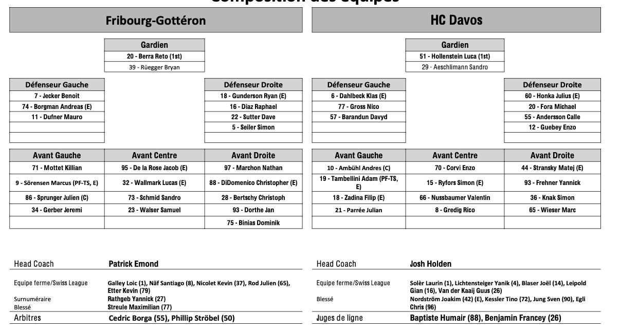 Teamaufstellung und nicht verfügbare Spieler für das Spiel Fribourg vs. Davos 05/10/2024 Follow SwissHabs Neueste Artikel Vor 8 Minuten HC Ajoie verstärkt sich mit Tarmo Reunanen für Saisonendspurt Vor 19 Minuten Genève-Servette: Drei Spieler fallen aus Vor einer Stunde HC Biel: Verletzungs-Update vor dem wichtigen Spiel in Lugano Vor 3 Stunden Nolan Diem verstärkt den HC Ajoie Vor 4 Stunden SC Bern: Aktuelle Informationen zum Kader