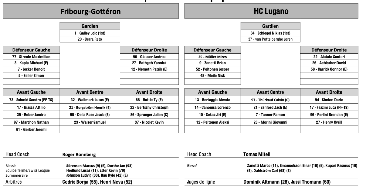 Teamaufstellung und nicht verfügbare Spieler für das Spiel Fribourg vs. Lugano 23/01/2026 Follow SwissHabs Neueste Artikel Vor 19 Stunden Vertragsverlängerungen beim EHC Chur Vor 21 Stunden Diego Kostner fällt einige Wochen aus Vor 21 Stunden Pontus Åberg verbringt die nächsten Spiele in Kloten Vor 23 Stunden Zwei weitere Verstärkungen für den EHC Visp Vor 23 Stunden Freudiges Ereignis für die Familie Björninen