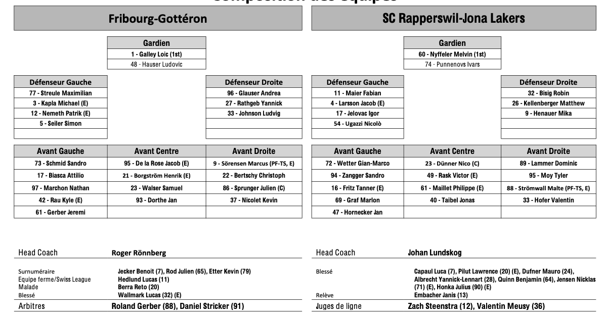 Teamaufstellung und nicht verfügbare Spieler für das Spiel Fribourg vs. Rapperswil 03/12/2025 Follow SwissHabs Neueste Artikel Vor 16 Stunden Vertragsverlängerungen beim EHC Chur Vor 18 Stunden Diego Kostner fällt einige Wochen aus Vor 18 Stunden Pontus Åberg verbringt die nächsten Spiele in Kloten Vor 20 Stunden Zwei weitere Verstärkungen für den EHC Visp Vor 20 Stunden Freudiges Ereignis für die Familie Björninen