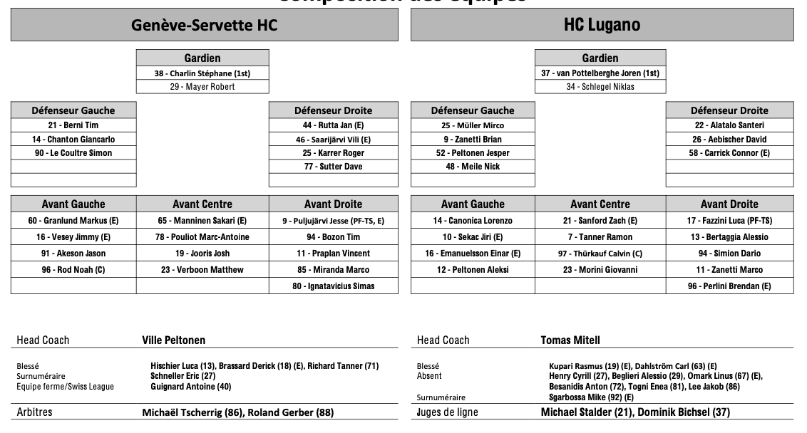 Teamaufstellung und nicht verfügbare Spieler für das Spiel Genf vs. Lugano 08/01/2026 Follow SwissHabs Neueste Artikel Vor 18 Stunden Vertragsverlängerungen beim EHC Chur Vor 20 Stunden Diego Kostner fällt einige Wochen aus Vor 20 Stunden Pontus Åberg verbringt die nächsten Spiele in Kloten Vor 22 Stunden Zwei weitere Verstärkungen für den EHC Visp Vor 22 Stunden Freudiges Ereignis für die Familie Björninen