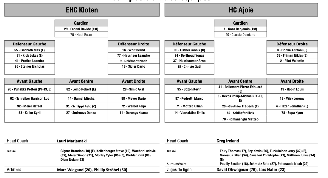Teamaufstellung und nicht verfügbare Spieler für das Spiel Kloten vs Ajoie 23/09/2025 Follow SwissHabs Neueste Artikel Vor 19 Stunden Vertragsverlängerungen beim EHC Chur Vor 21 Stunden Diego Kostner fällt einige Wochen aus Vor 21 Stunden Pontus Åberg verbringt die nächsten Spiele in Kloten Vor 23 Stunden Zwei weitere Verstärkungen für den EHC Visp Vor 23 Stunden Freudiges Ereignis für die Familie Björninen