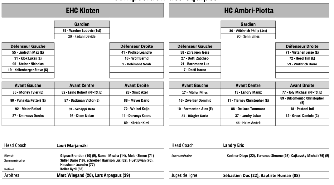 Teamaufstellung und nicht verfügbare Spieler für das Spiel Kloten vs. Ambri 07/12/2025 Follow SwissHabs Neueste Artikel Vor 16 Stunden Vertragsverlängerungen beim EHC Chur Vor 18 Stunden Diego Kostner fällt einige Wochen aus Vor 18 Stunden Pontus Åberg verbringt die nächsten Spiele in Kloten Vor 20 Stunden Zwei weitere Verstärkungen für den EHC Visp Vor 20 Stunden Freudiges Ereignis für die Familie Björninen