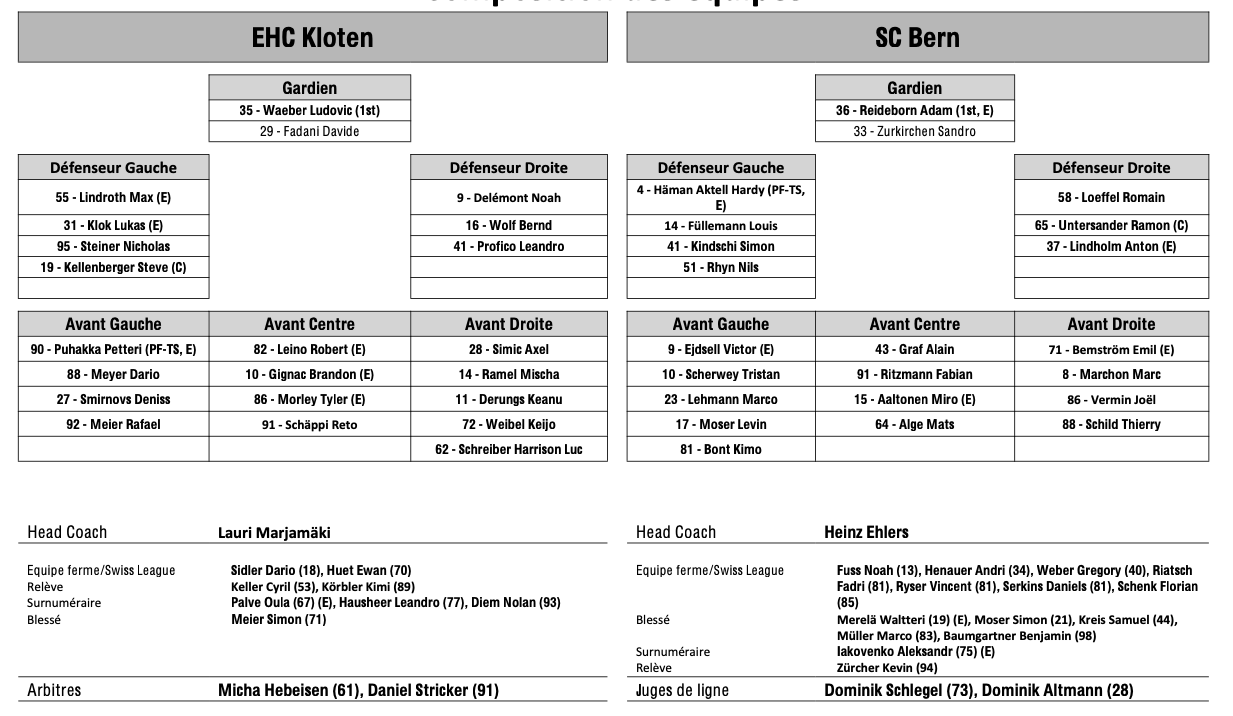Teamaufstellung und nicht verfügbare Spieler für das Spiel Kloten vs Bern 21/11/2025 Follow SwissHabs Neueste Artikel Vor 16 Stunden Vertragsverlängerungen beim EHC Chur Vor 18 Stunden Diego Kostner fällt einige Wochen aus Vor 18 Stunden Pontus Åberg verbringt die nächsten Spiele in Kloten Vor 20 Stunden Zwei weitere Verstärkungen für den EHC Visp Vor 20 Stunden Freudiges Ereignis für die Familie Björninen