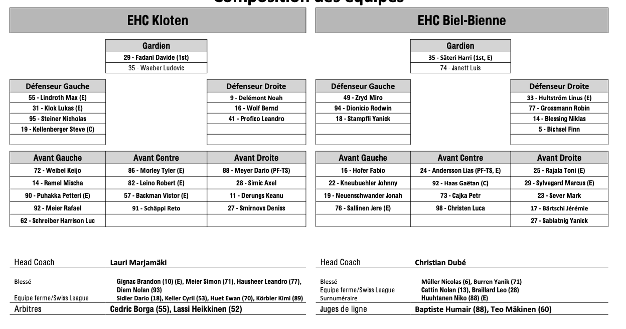 Teamaufstellung und nicht verfügbare Spieler für das Spiel Kloten vs. Biel 01/02/2026 Follow SwissHabs Neueste Artikel Vor 18 Stunden Vertragsverlängerungen beim EHC Chur Vor 20 Stunden Diego Kostner fällt einige Wochen aus Vor 20 Stunden Pontus Åberg verbringt die nächsten Spiele in Kloten Vor 22 Stunden Zwei weitere Verstärkungen für den EHC Visp Vor 22 Stunden Freudiges Ereignis für die Familie Björninen
